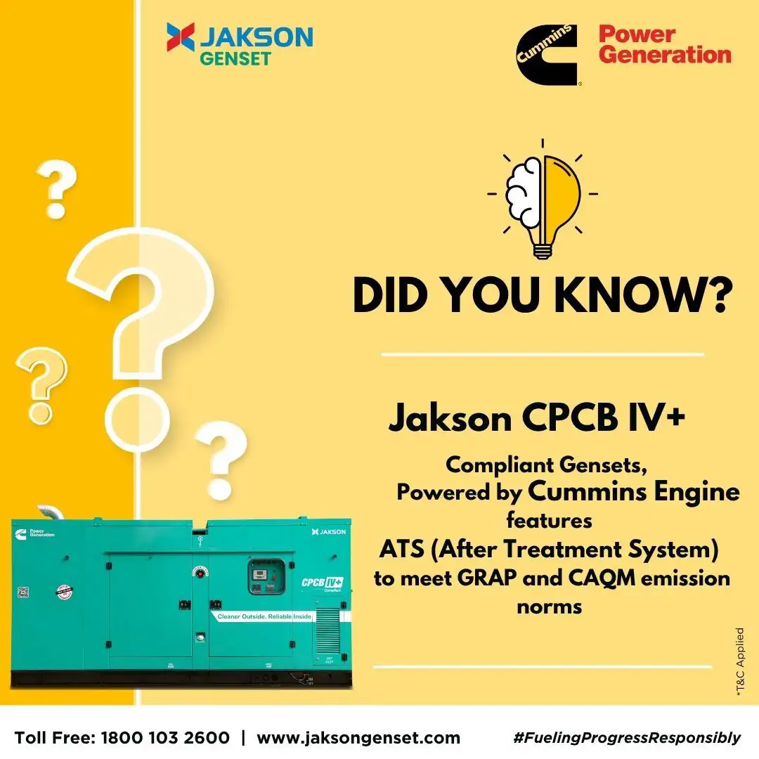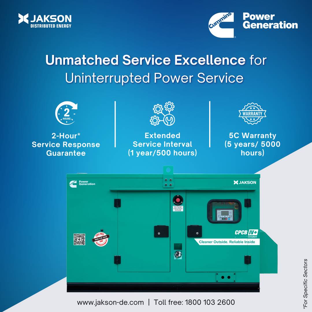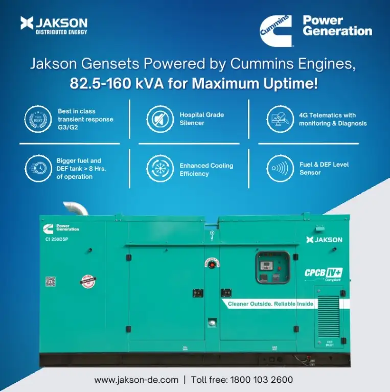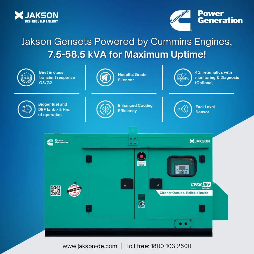 With CPCB IV+ compliant gensets powered by Cummins engines, Jakson is driving the shift toward low-emission, high-efficiency power solutions.