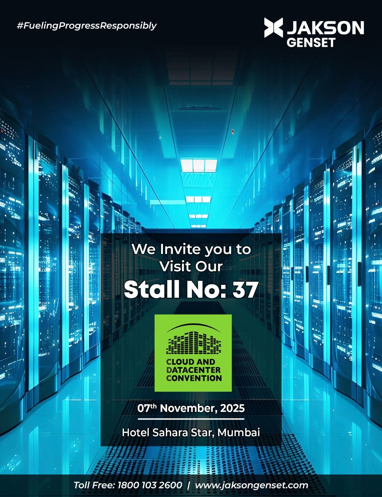 Meet Jakson Genset at the Cloud & Datacenter Convention – South Asia, on 7th November at Hotel Sahara Star, Mumbai.