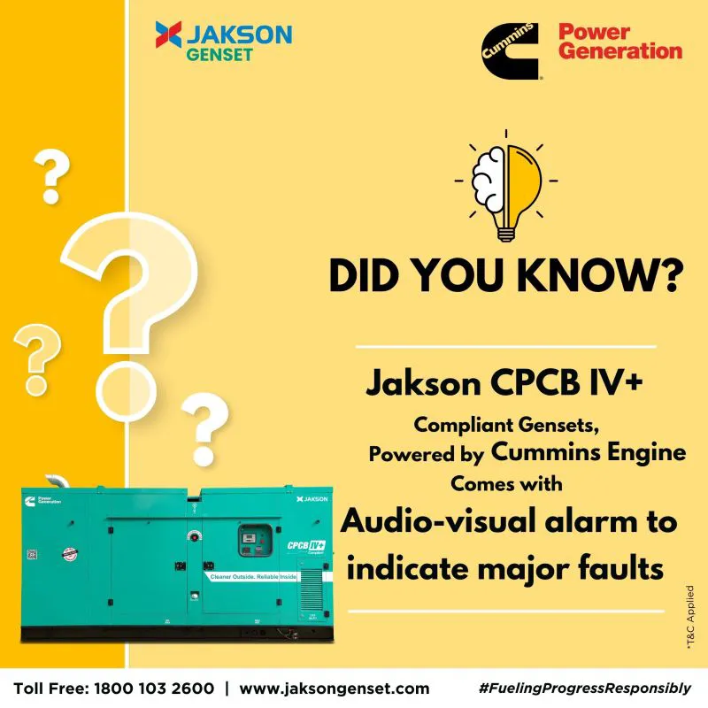 With Jakson Gensets powered by Cummins CPCB IV+ engines, stay compliant, efficient, and unstoppable.
