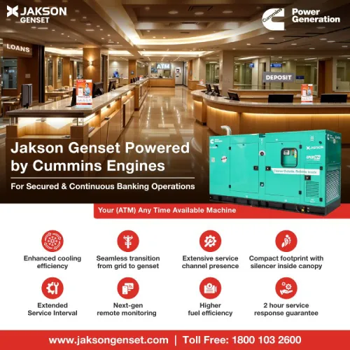 Jakson Gensets powered by Cummins engines ensure seamless operations for banks-keeping transactions running smoothly and customers connected, even during power outages.